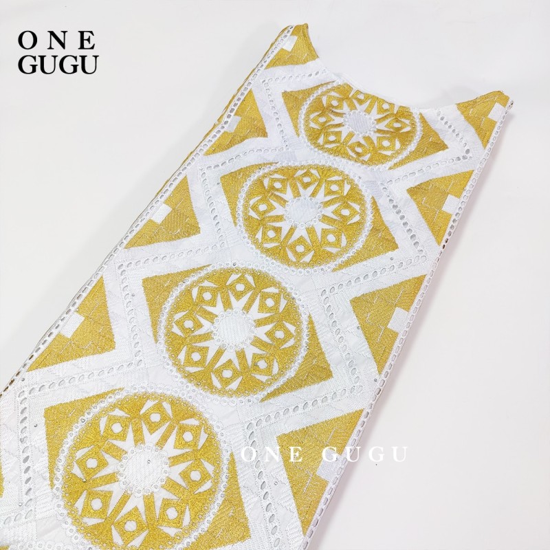 2022 Nigerian Original Bazin Dress Dashiki Gold Brocade Embroiderey Basin Clothing White Robe Wedding Party Lady Gown Dresses
