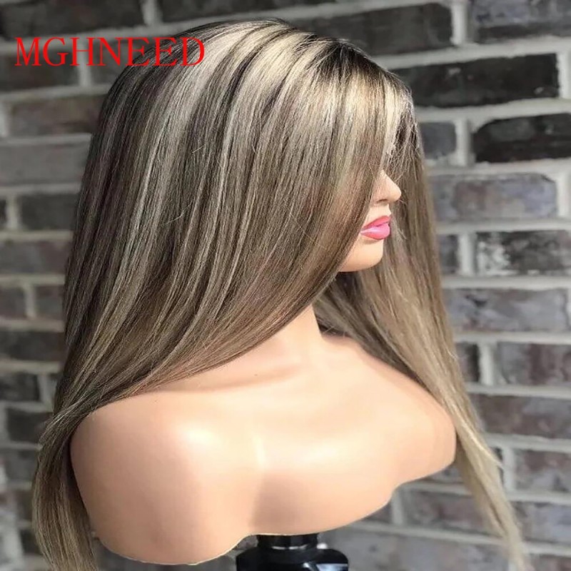 Highlight Human Hair Colored Wigs For Women Ash Grey Black Blonde 360 Straight Lace Frontal Wig Hd Transparent Lace Brazilian